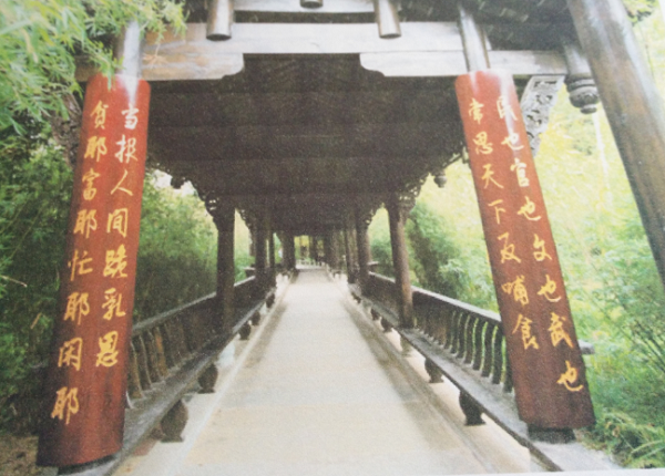以孝道文化长廊为载体展现廉政文化。孝道文化长廊是景区的一扇窗口,是集“特色化、人性化”于一体的信息中心。充分利用这一平台,向游客传递廉政文化信息。通过在长廊内挂孝道文化标牌、故事牌等,已开展廉政文化文字载体展示等方式达到展现廉政文化的目的。